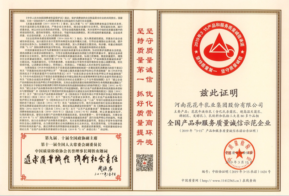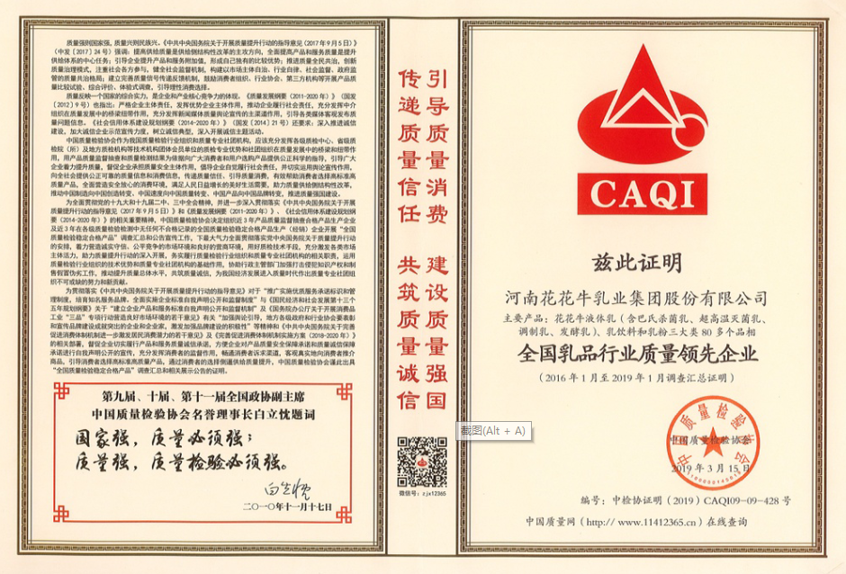 全國乳品行業(yè)質(zhì)量領(lǐng)先企業(yè)